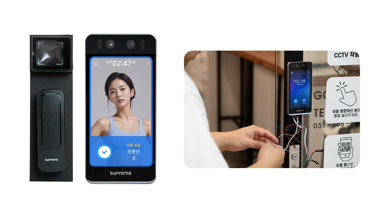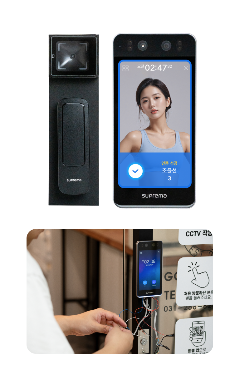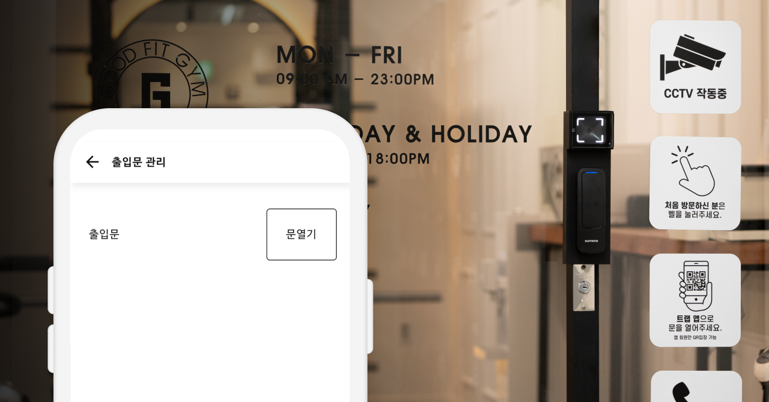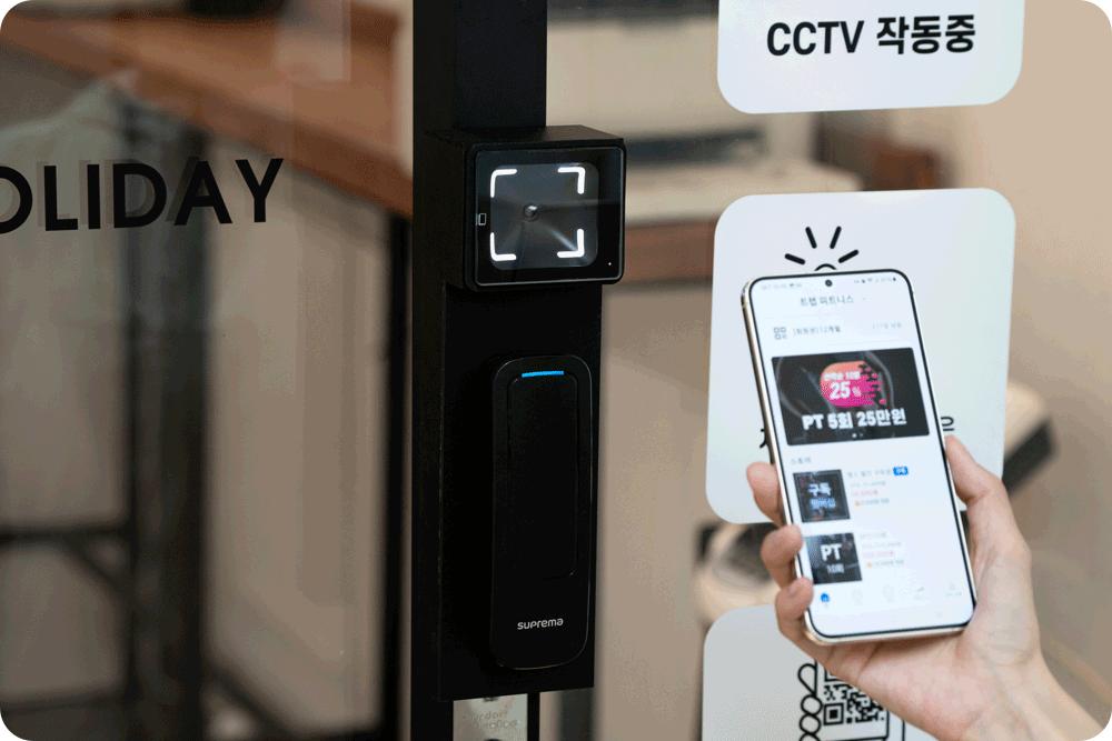자동문에 리더기만 설치하면 간단하게24시간 무인 헬스장을 만들 수 있어요.QR코드 인증, 얼굴 인증 방식 중 한가지만 선택해주세요.