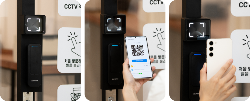 자동문에 리더기만 설치하면 간단하게 24시간 무인 헬스장을 만들 수 있어요.QR코드 인증, 얼굴 인증 방식 중 한가지만 선택해주세요.